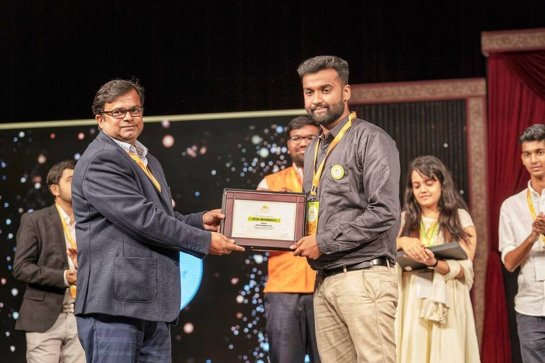 Afsal pursued his Bachelor of Technology in Mechanical Production Engineering from TKM College of Engineering, Kollam. His final-year project — “Design and Fabrication of a Plastic Bottle Shredder for Perinad Grama Panchayat” — was part of a larger social initiative titled “The Journey of Awakening for Protecting Life Underwater.” This project went on to win the 5th Millennium Ocean Prize (2019), an international award recognising innovative contributions to ocean conservation.